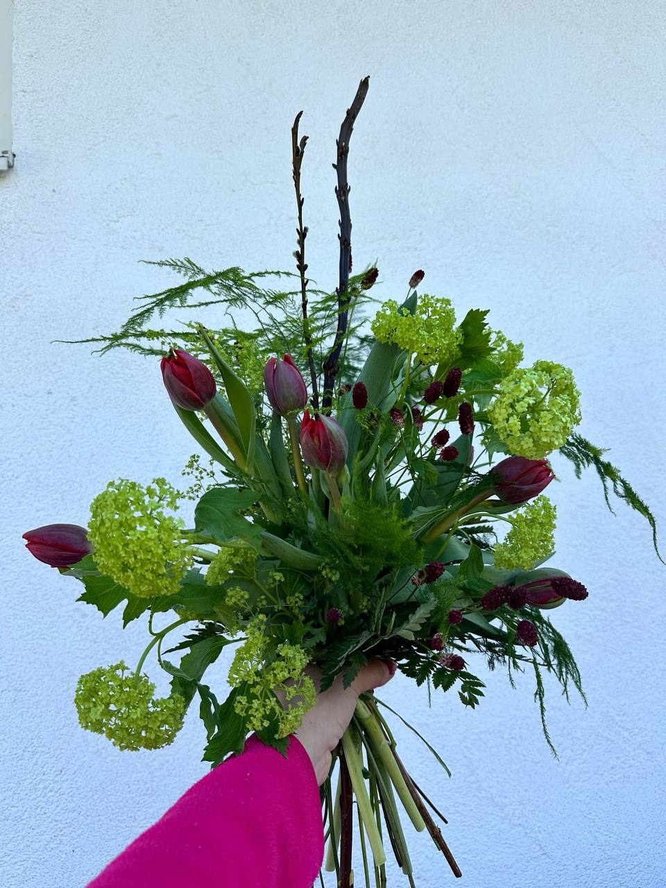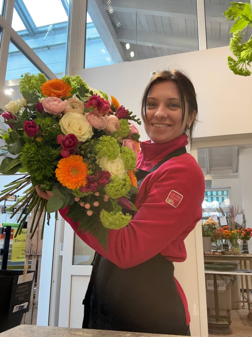 Herstellung von Blumensträußen für den Laden und Arbeit als Kassierer